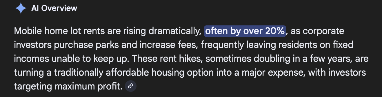 Owners of manufactured homes are paying rising rent costs.